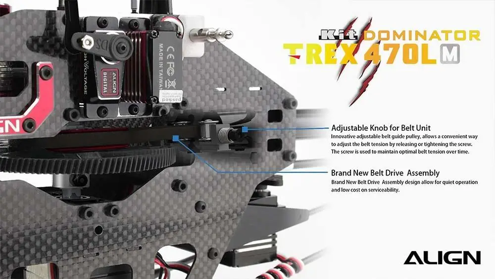 Following the release of the ALIGN T-REX 450L, which introduced an innovative design and came equipped with high-end electronic equipment. ALIGN's most anticipated helicopter release in 2016 the T-REX 470L is born. No matter whether you are a newcomer or a professional, the brand new ALIGN T-REX 470LM Belt will give you the new flying feel again.