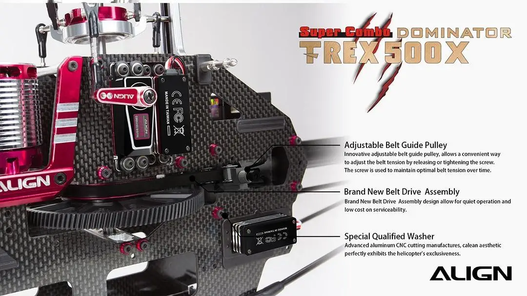 Experienced in numerous of innovations, the brand new T-REX 500X Super Combo Belt RH50E17. More attractive and creative design ideas are all in here, it absolutely would be your favorite T-REX 500X model ever.