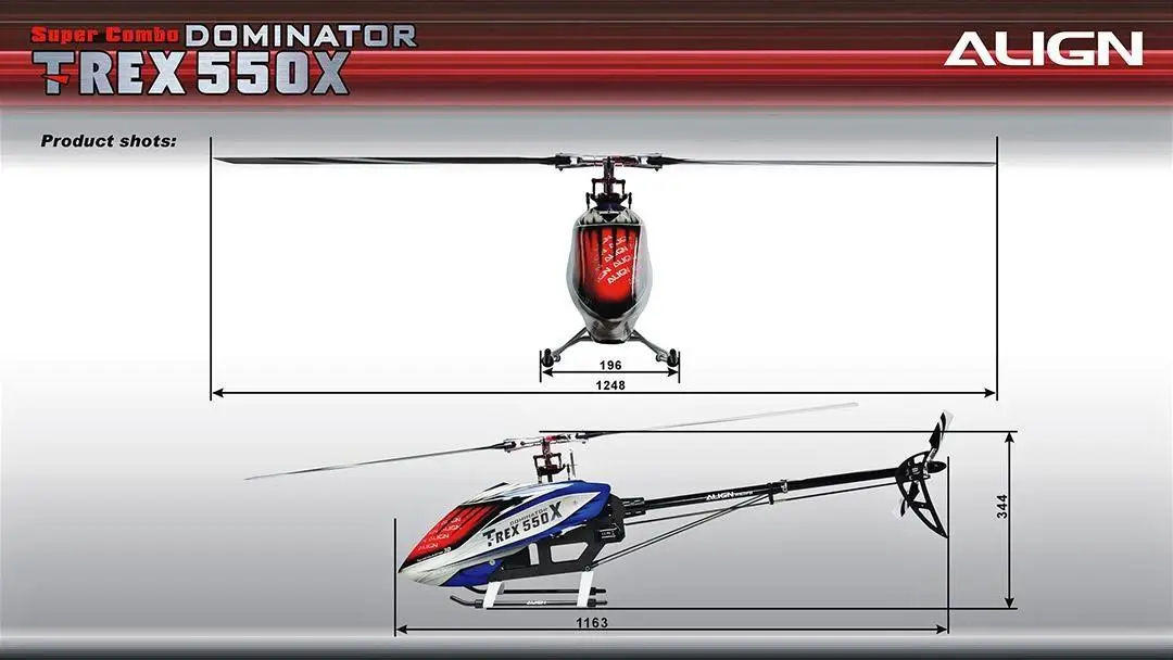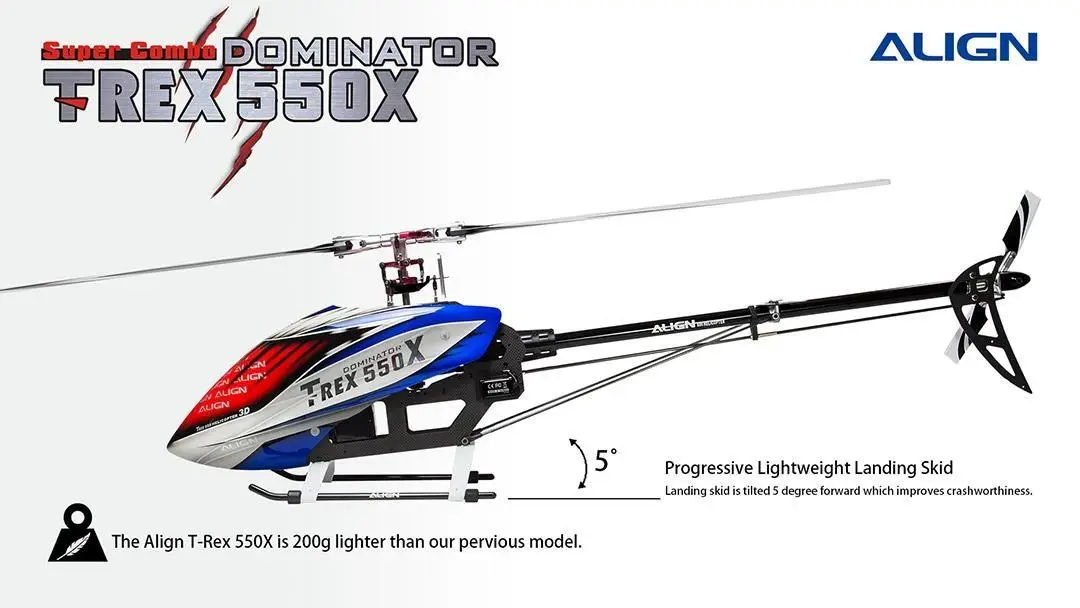 The NEW ALIGN T-REX 550X Super Combo RH55E18 is definitely a significant leap forward in performance, enhanced by increased power, the integration of numerous innovative design changes, and lightweight improvements. The TREX 550X performance is outstanding!