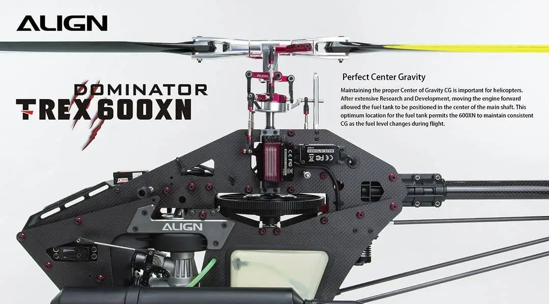 Maintaining the proper Center of Gravity CG is essential for helicopters. After extensive Research and Development, moving the engine forward allowed the fuel tank to be positioned in the center of the main shaft. This optimum location for the fuel tank permits the 600XN to maintain consistent CG as the fuel level changes during flight.