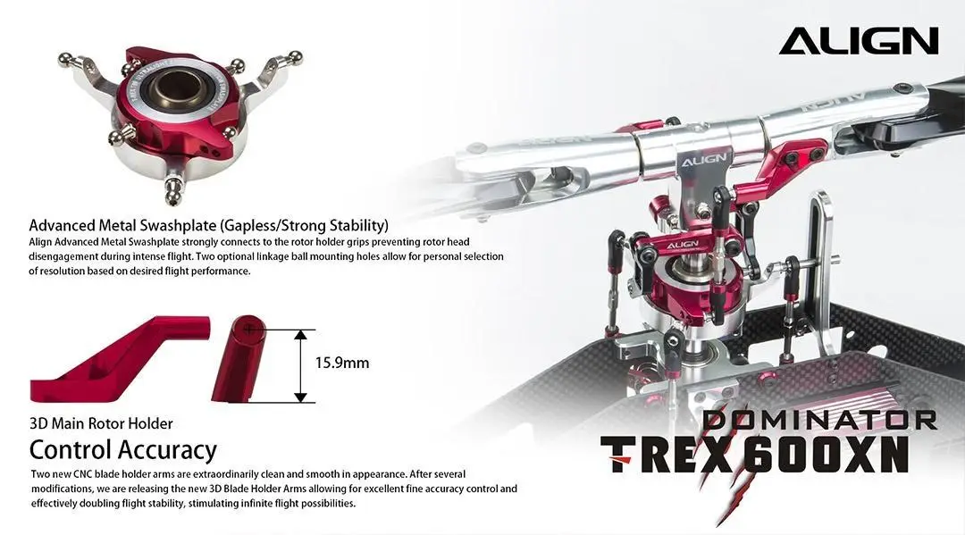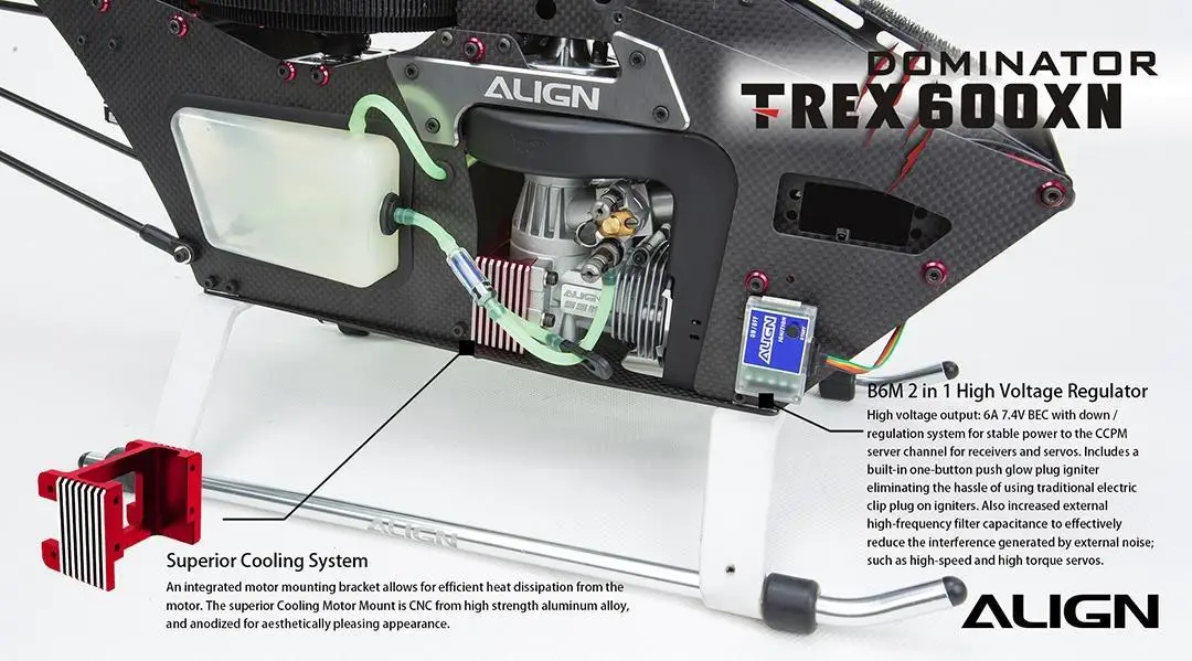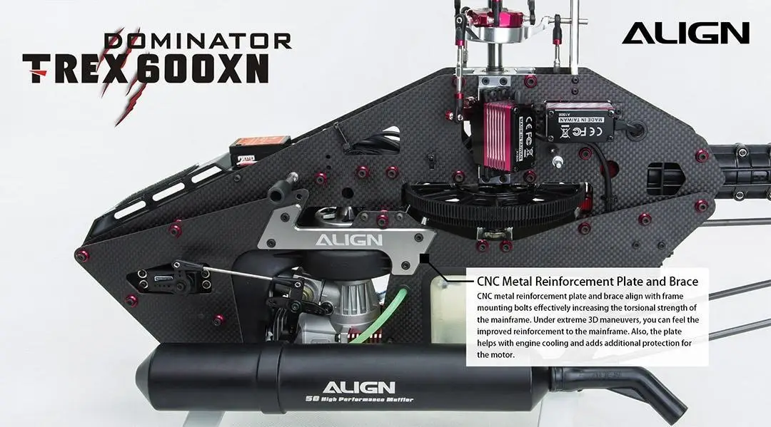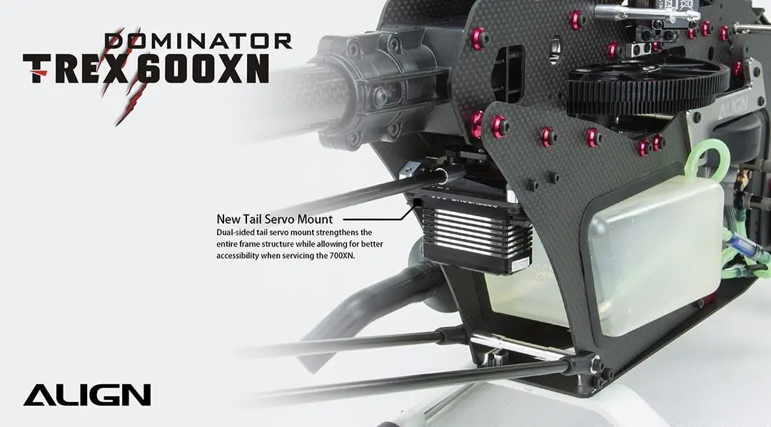 Designed specifically for helicopters, utilizing a brushless motor for fast speed, high torque, and superior, efficient reaction time allows the Align 600XN precise, fast performance. The brand new DS820M high voltage brushless servo has a with a new CNC machined aluminum case. The new aluminum case design is aesthetically appealing while acting as a highly efficient heat sink for superior protection of the servo,