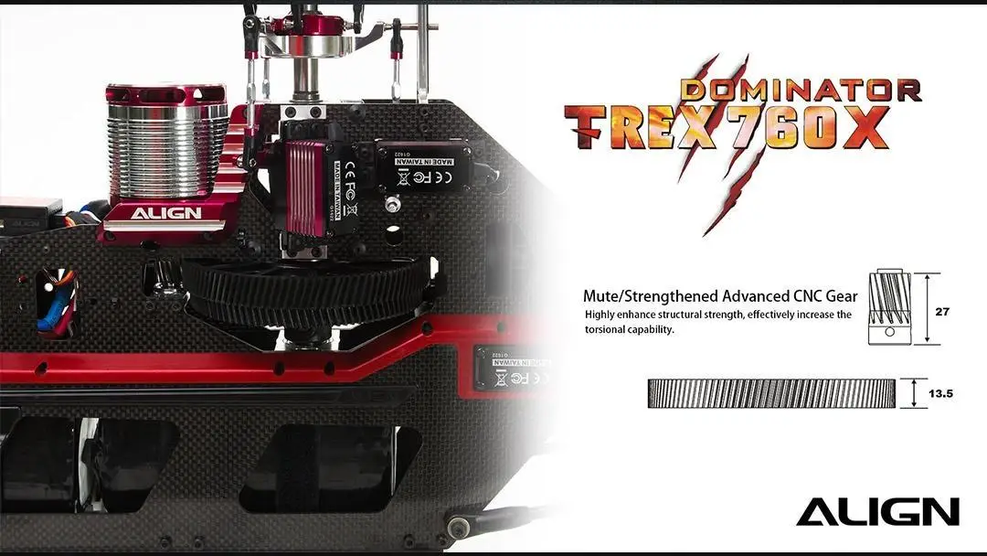 Engineered Narrow Body Design efficiently decreases gear abrasion and machine deformation. The Align T-Rex 700X newly designed narrow body is more powerful and has longer flying durability.