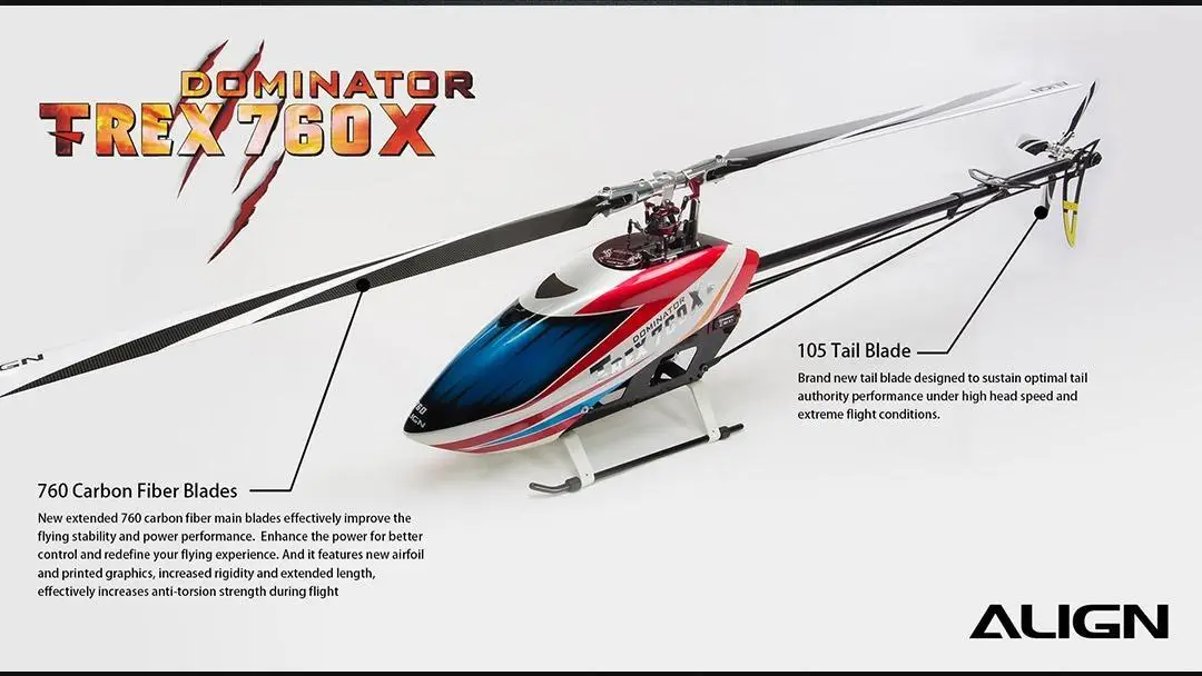 The brand new ALIGN T-REX 760X Top Combo RH76E01 features with new body length and new 760mm main blade for F3C/3D flight design providing the outstanding performance than other series will give you the different flying feeling.