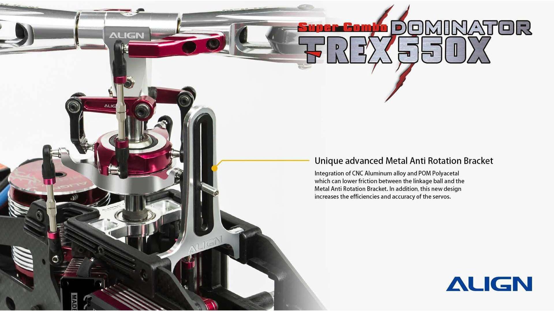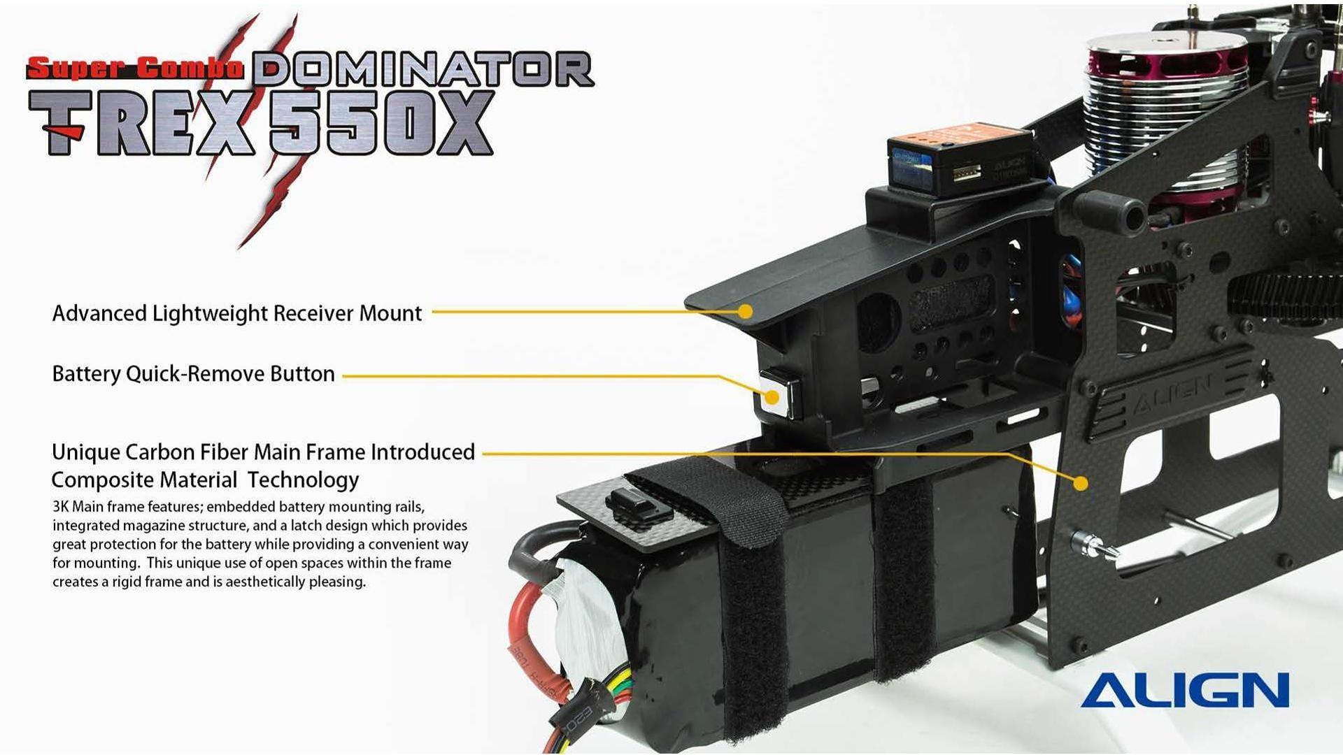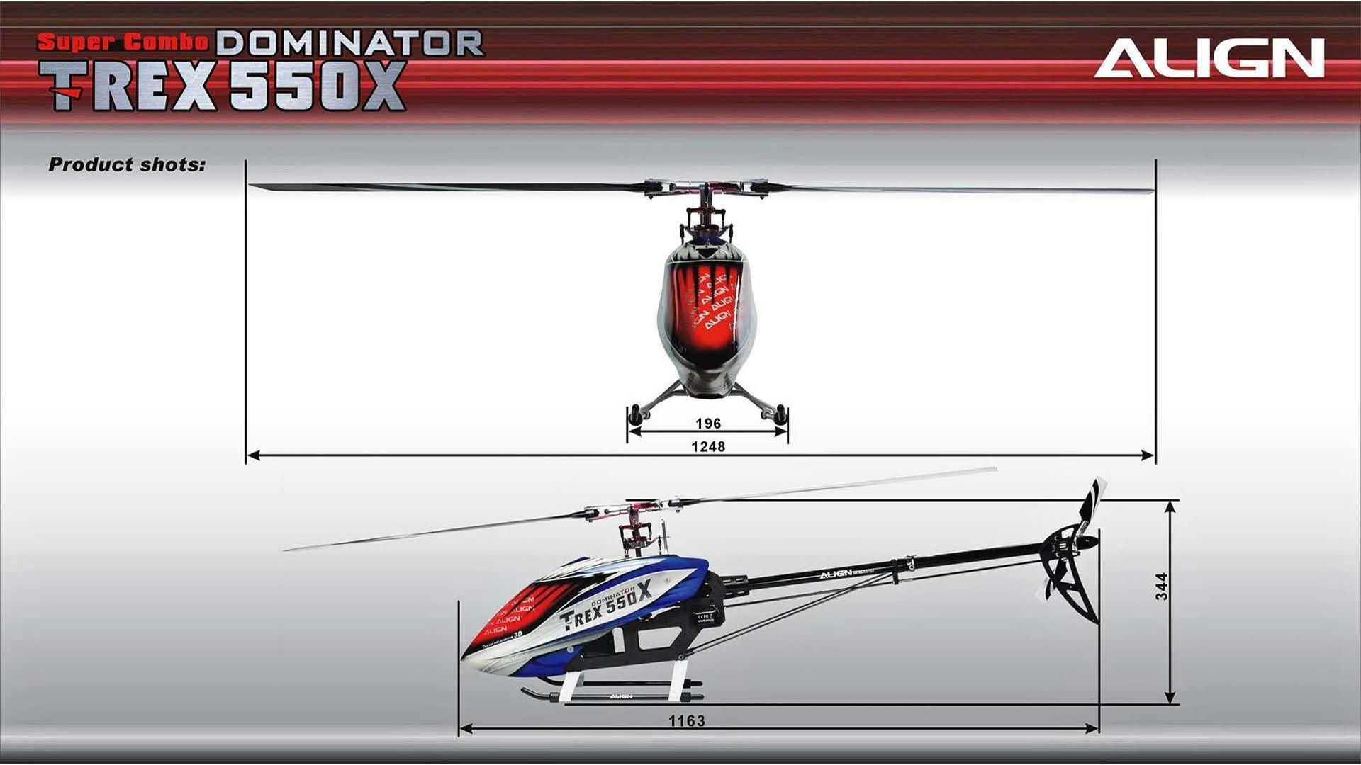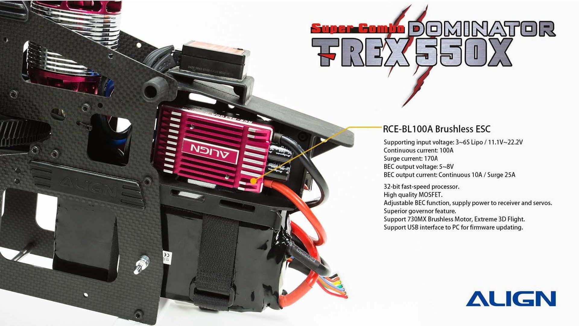 The NEW TREX 550X Dominator SUPER COMBO Kit is expected to be Release Soon! There are several upgrades to this new release by Align; including HV Servos, Skid Design, 100A Brushless ESC, 730MX Motor, Tail Pitch Assembly, and more. Another Good Release by Align!