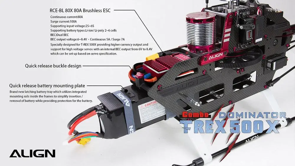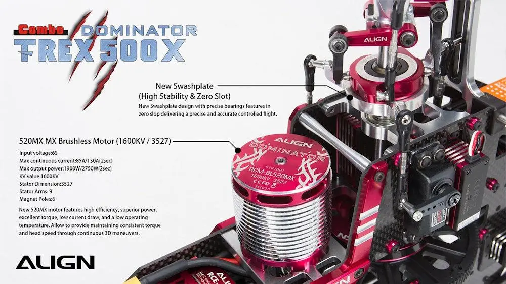 Equipped with all the top end electronic devices, ALIGN 500X is as stable and powerful like the large scale helicopters. It is about to re-define the 500-class helicopters in your mind.