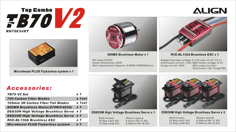 All-New ALIGN T-REX TB70 Super Combo RH70E59XW is specially designed for extreme 3D flight addicts.