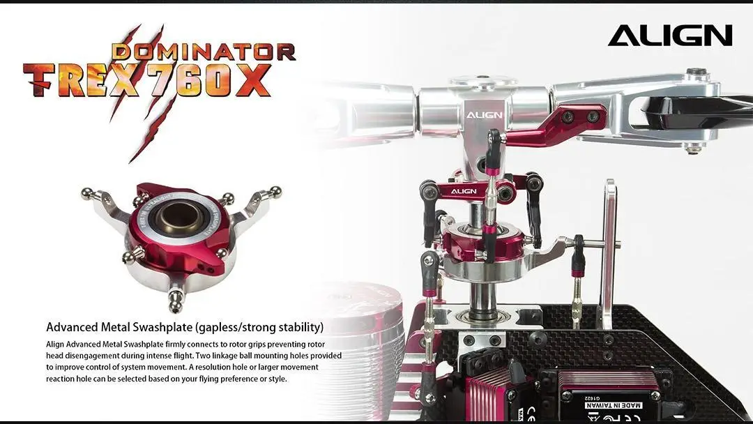 The ALIGN TREX 760X Top Combo introduces an advanced engineered narrow body design efficiently decreases gear abrasion, machine deformation, increases power, and extends flying durability. The unique Split-Type Main Frame design, made of composite material side plates, is engineered using our proprietary embedding technology, which strengthens the entire structure and provides better accessibility for servicing the ALIGN 760X. This extraordinary design includes a progressive lightweight landing skid making the T-REX 760X the leader in this class. The lightweight structure design which significantly reduce the body weight can effectively increase your flight time.